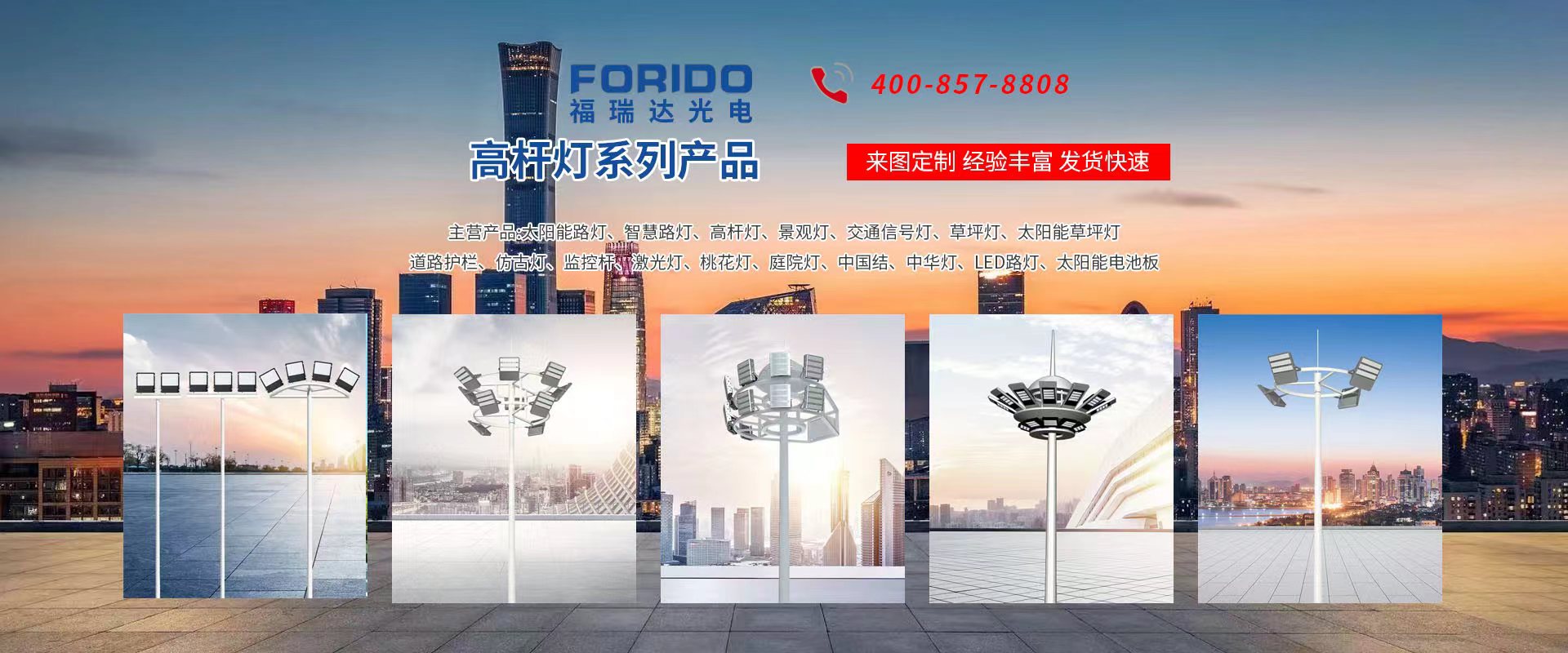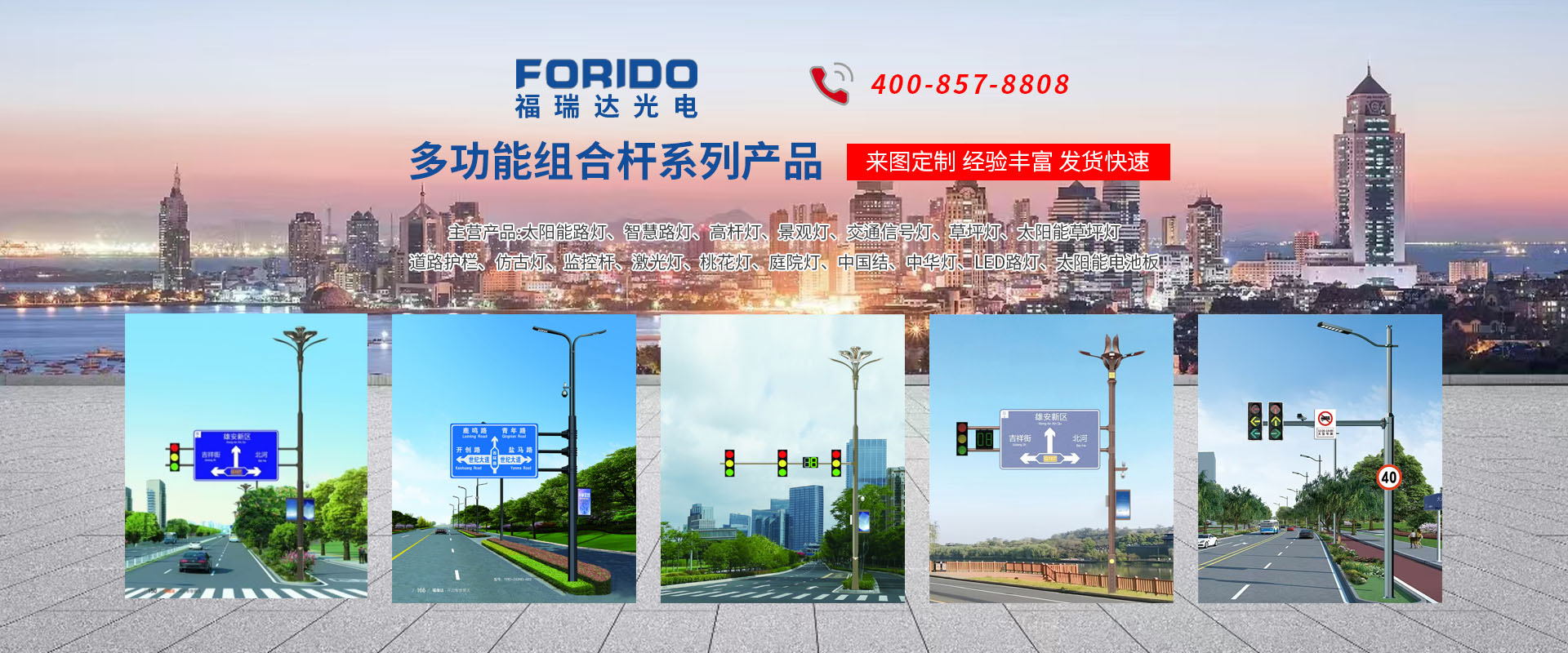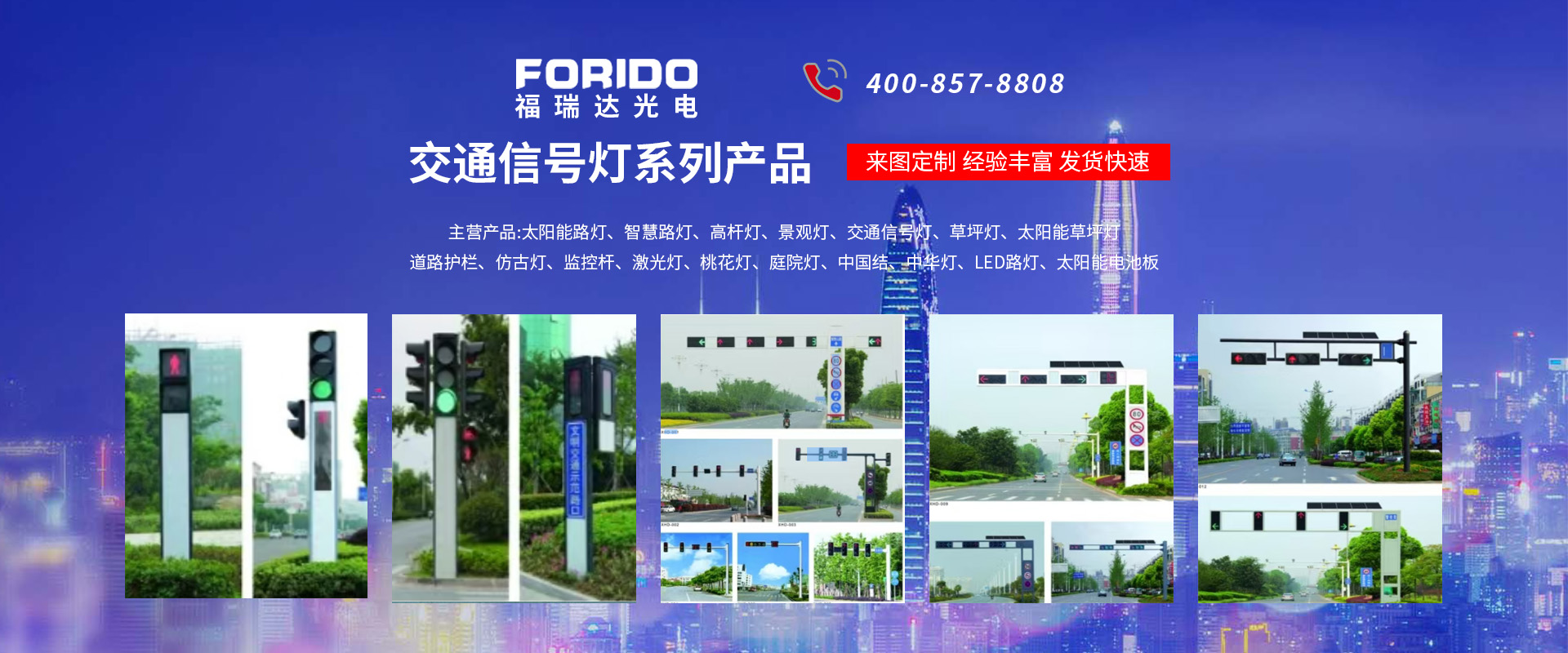 揚(yáng)州福瑞達(dá)光電科技有限公司位于淮左名都?xì)v史文化名城、中國路燈制造基地?fù)P州市北郊菱塘工業(yè)園,公司占地面積76000平方米,注冊資金10518萬元,擁有高級(jí)技術(shù)嫻熟的員工280多人,擁有大型折彎機(jī)、激光切割、數(shù)控注塑機(jī)、壓鑄機(jī)、自動(dòng)埋弧焊、氣焊、彩色粉末靜電噴塑等大型自動(dòng)化設(shè)備,我公司是一家集設(shè)計(jì)、研發(fā)、生產(chǎn)、銷售、施工安裝服務(wù)為一體的戶外交通照明產(chǎn)品制造商,主要生產(chǎn)智慧路燈、太陽能路燈、LED路燈、高桿燈、景觀燈、交通信號(hào)燈、交通標(biāo)志牌、通信鐵塔、路跨鋼結(jié)構(gòu)、公交站臺(tái)、太陽能光伏組件、景點(diǎn)亮化、樓宇亮化工程的設(shè)計(jì)施工等。公司秉承開拓創(chuàng)新、銳意進(jìn)取、精誠服務(wù)的企業(yè)精神,堅(jiān)持以“誠信為本、技術(shù)為先、服務(wù)是金”的合作理念,我們憑借先進(jìn)的制造工藝、優(yōu)質(zhì)的產(chǎn)品質(zhì)量、合理的市場價(jià)格和完善的售后服務(wù)贏得了廣闊的市場和客戶的信賴。  我公司已通過ISO9001質(zhì)量體系認(rèn)證、ISO14001環(huán)境管理體認(rèn)證,CQC產(chǎn)品認(rèn)證,中國節(jié)能產(chǎn)品認(rèn)證,通過“CCC”強(qiáng)制性產(chǎn)品認(rèn)證,具有市政總承包,照明,交安,設(shè)計(jì)等資質(zhì)···